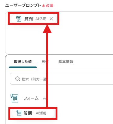 ユーザープロンプトは検索を行うワードを取得した値から入力しましょう。