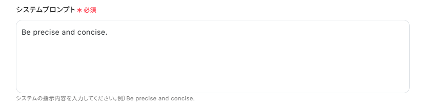 システムプロンプトは今回、ページ注釈通り入力しました。