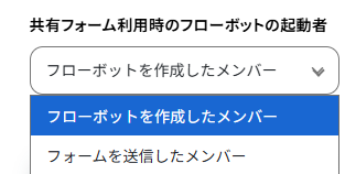 「共有フォーム利用時のフローボット起動者」は、「フローボットを作成したメンバー」に設定しています。ここまで設定したら「次へ」をクリックしてください。