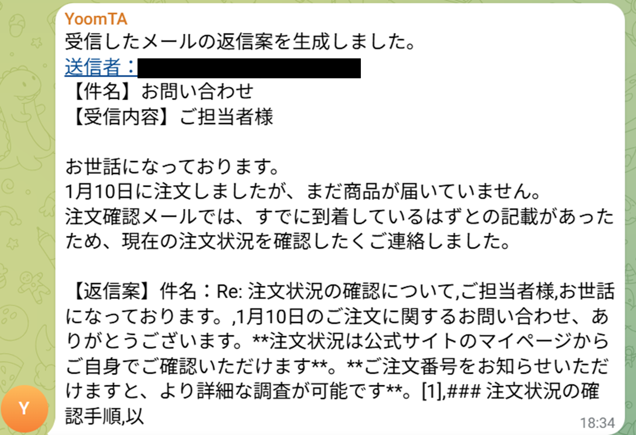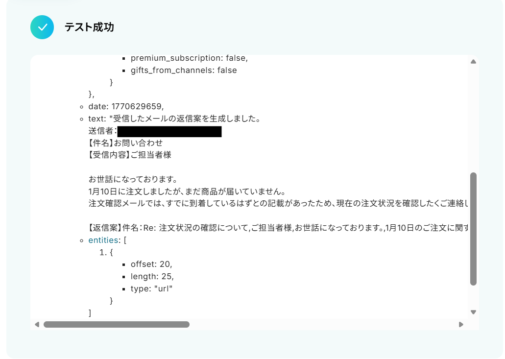 - Perplexityが生成した返信案を即座にTelegramへ自動通知することで、重要なメールの見落としや共有漏れを防ぎ、迅速な対応を後押しします。