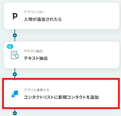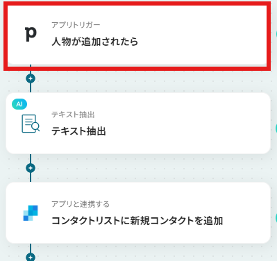 まずはこのフローボットでトリガーになっている、Pipdriveの「人物が追加されたら」を設定していきましょう。