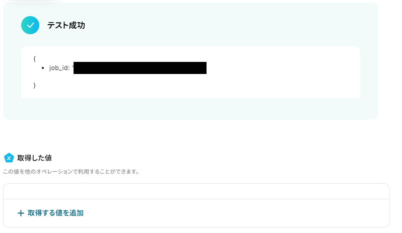 テストが成功すると、取得した値が入ります。