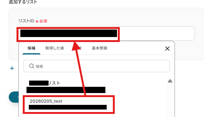 「追加するリスト」は候補に表示される中から、追加したいリストを選んでください。