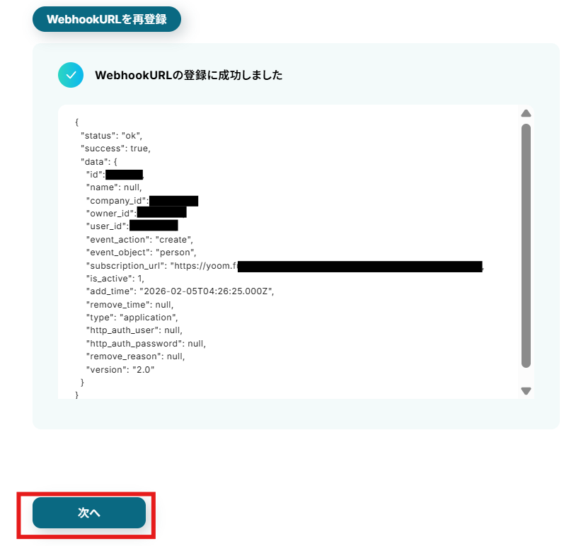 登録に成功したら「次へ」で進みましょう。