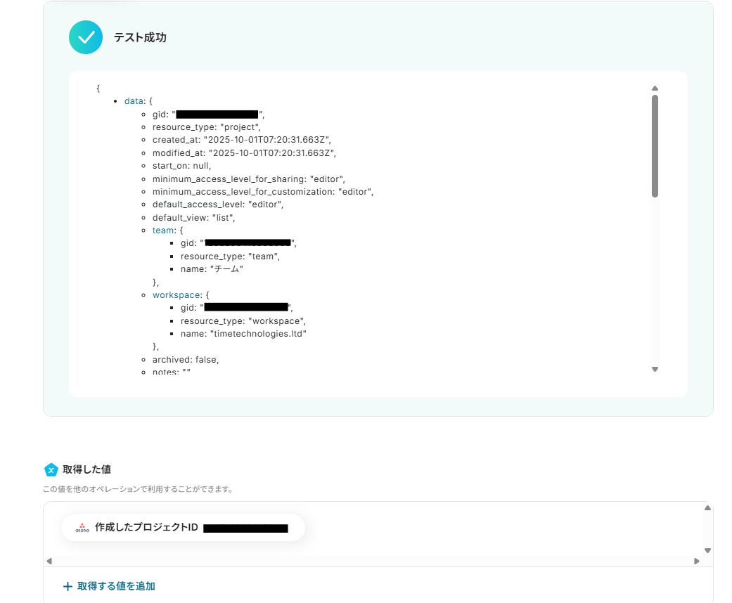 実際にAsanaにデータが追加されることを確認してください。確認後、保存しましょう。
