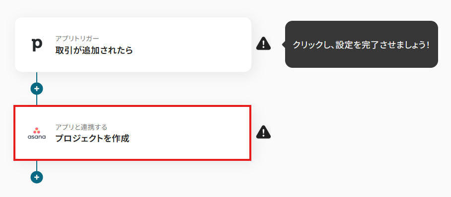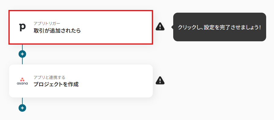 このワークフローを活用すれば、Pipedriveで特定の条件を満たす取引が追加された際に、Asanaへ自動でプロジェクトを作成できます。