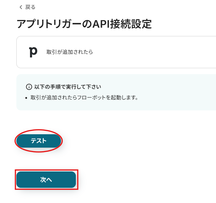 先ほどの画面で「OK」をクリックして、表示された画面のアプリトリガー「取引が追加されたら」をクリックしましょう。