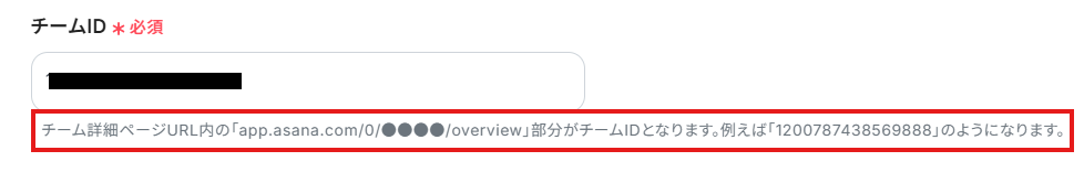 「チームID」は、入力欄下の注釈に沿って、URLから取得して入力しましょう。