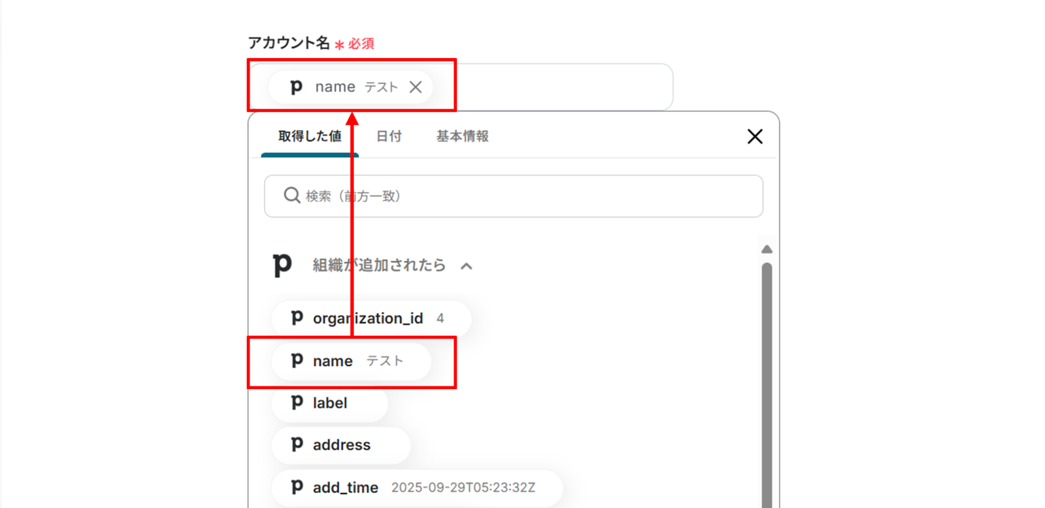 取得した値を使って入力することで、Pipedriveの最新情報を引用することができます。