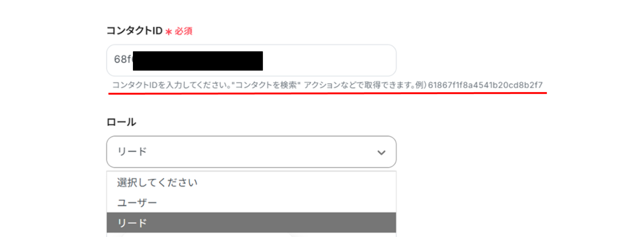 (3)「API接続設定」画面から赤線を確認の上、コンタクトID、コンタクトタイプを入力します。