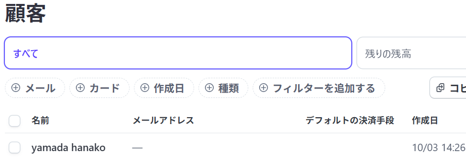 最後にStripeも確認し、顧客が作成されていれば完了です。
