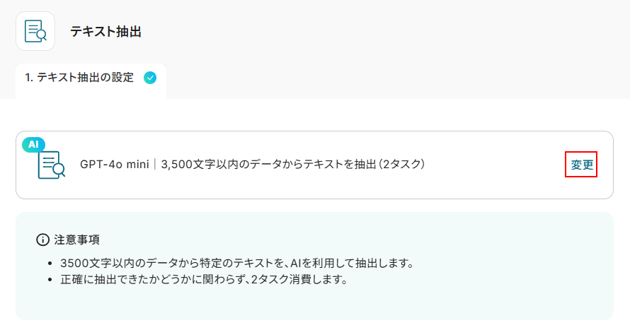 今回はデフォルトで設定されているGPT-4o mini 3,500文字を使用します。