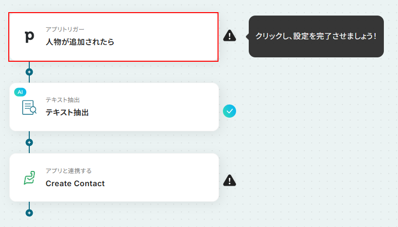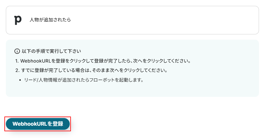 今回ご紹介するテンプレートは、Pipedriveに人物が追加されたら起動します。