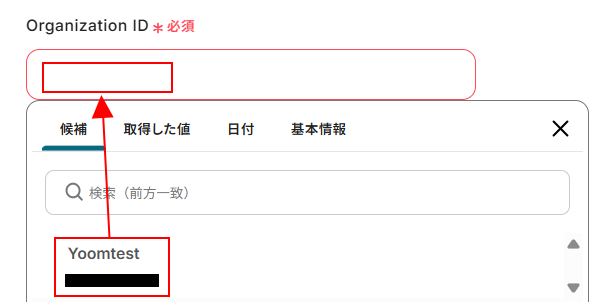 Organization IDを設定します。