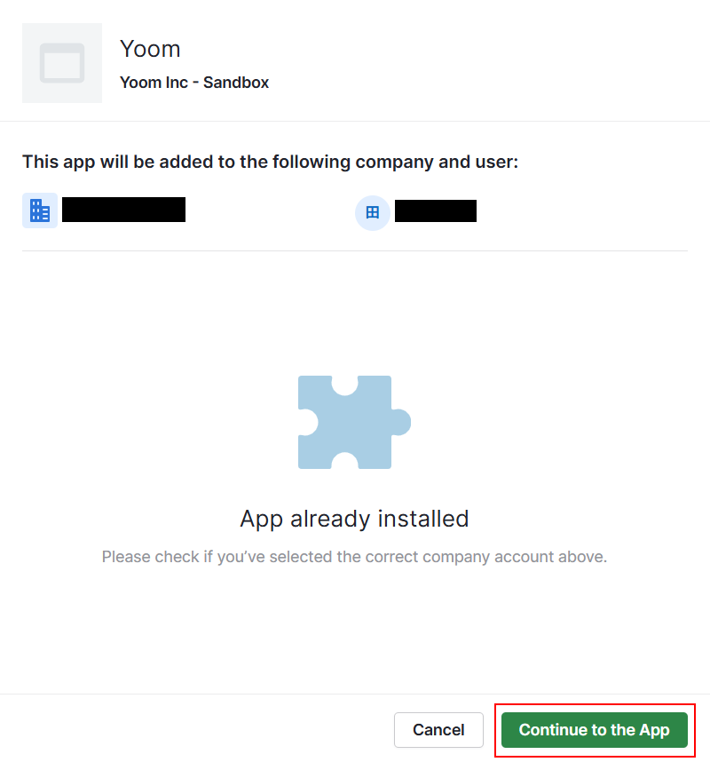 表示内容を確認し、問題なければContinue to the Appをクリックします。