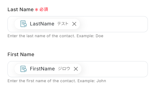 Zoho Deskは姓名を分けて登録する必要があるため、Pipedriveから取得した名前を姓と名に分割します。