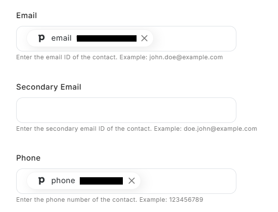 - Zoho DeskでContactを作成する際、どのフィールドにどの情報を登録するかを自由に設定できます。例えば、Pipedriveから取得した氏名やメールアドレスといった情報を、Zoho Deskの対応する項目にそれぞれ紐づけてください