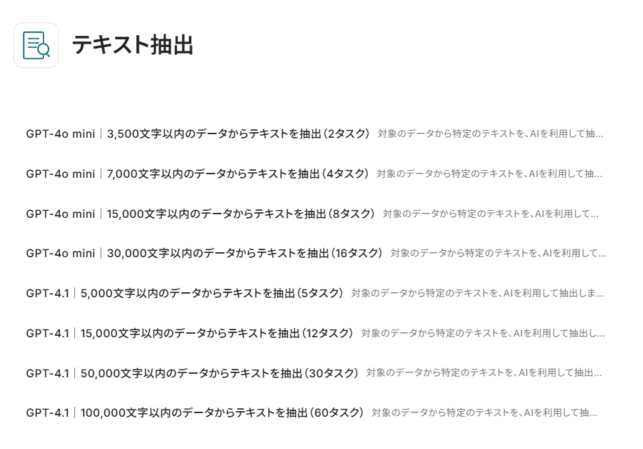 文字数やタスク数を確認し、利用したいものをお選びください。