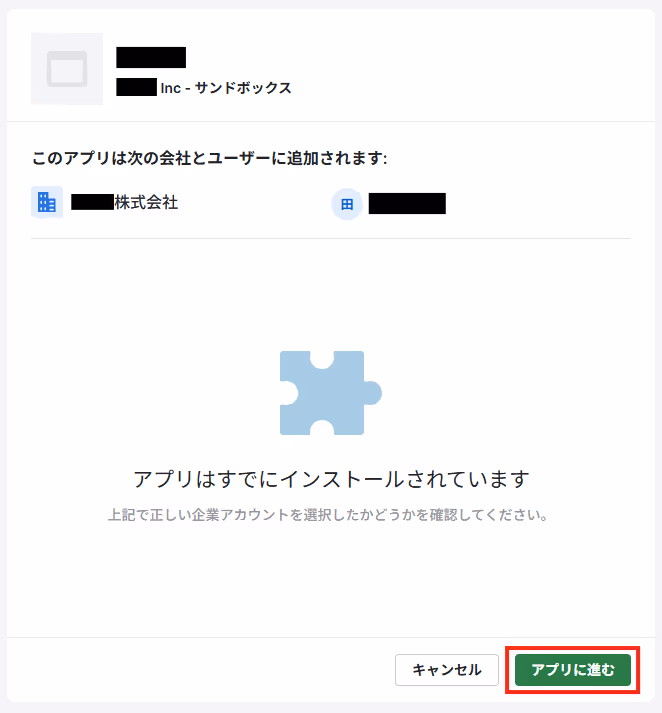 3.次の画面で、「アプリに進む」をクリックしてください。