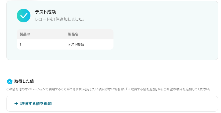 このページ内には製品一覧の取得に関して他にも設定できる項目があるので、必要に応じて入力してください。