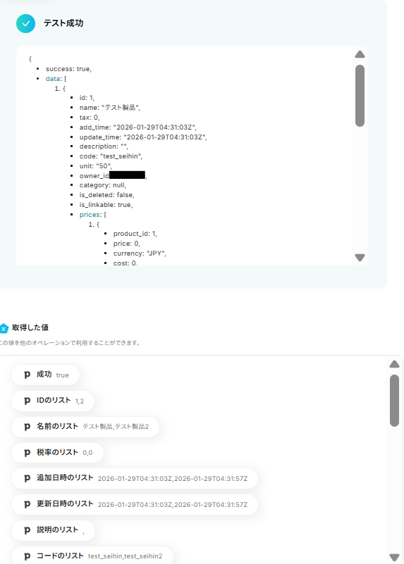 ステップ4:Pipedriveから製品一覧の取得を行う