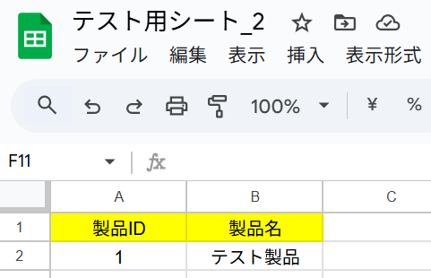 該当のGoogle スプレッドシートを見に行くと、製品データが記録されています。