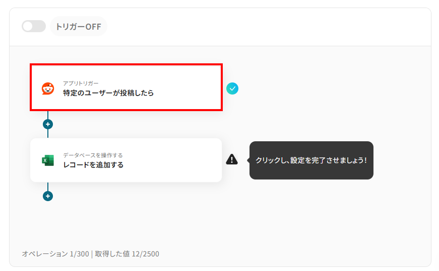 - Redditのトリガー設定では、投稿を監視したいユーザー名を任意で設定してください。