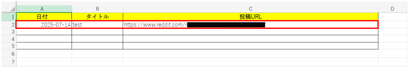 特定のサブレディット(コミュニティ)内の新しい投稿をすべて自動でMicrosoft Excelのシートに追加します。