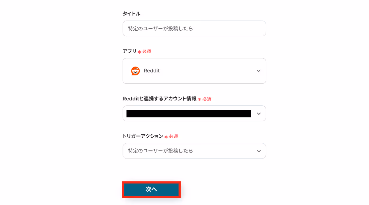 Redditと連携するアカウント情報は、マイアプリ連携したものが反映されています。タイトルは必要があれば、わかりやすいものに修正しておきましょう!