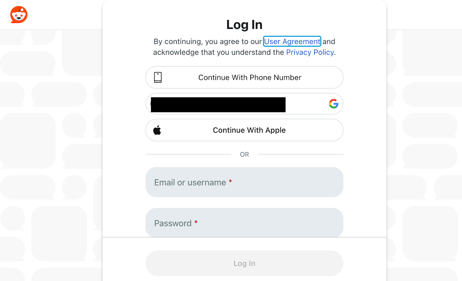 アプリ一覧でRedditのアプリアイコンをクリックします。 ログイン画面が出てくるため、お好きな方法でログインを行ってくださいね。 今回、私はGoogleアカウントでログインしてみました!