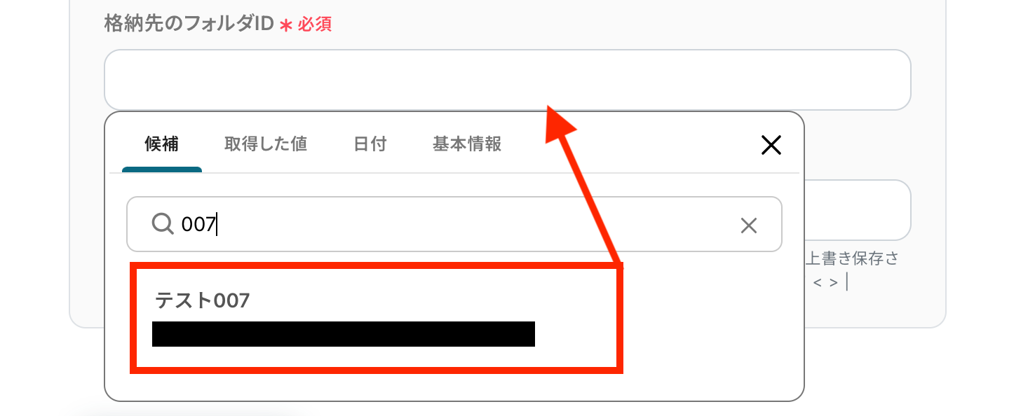 AI機能によるテキスト抽出の設定では、トリガーで取得したMicrosoft Teamsのメッセージ内容を変数として利用し、フォルダ名として抽出したい項目を任意に指定することが可能です。これにより、独自の命名規則に沿ったフォルダを自動で作成できます。 ■注意事項