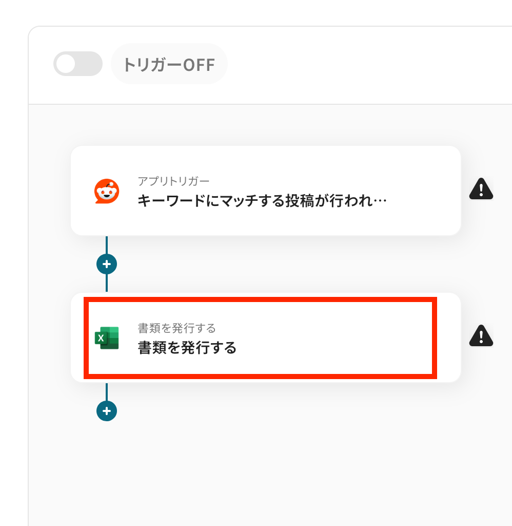 Redditのトリガー設定では、監視対象とするキーワードを任意で設定することが可能です AIによる要約のオペレーションでは、要約対象の文章や要約の条件などをプロンプトで自由にカスタマイズできます 書類発行機能では、任意のMicrosoft Excelファイルをテンプレートとして設定し、Redditの投稿内容やAIの要約結果などを書類の好きな位置に出力できます ■注意事項