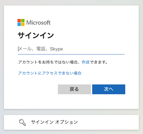 Microsoftのサインイン画面が表示されるので、Yoomと連携するアカウントのメールアドレスか電話番号(またはSkype)の情報を入力し、「次へ」を押してください。