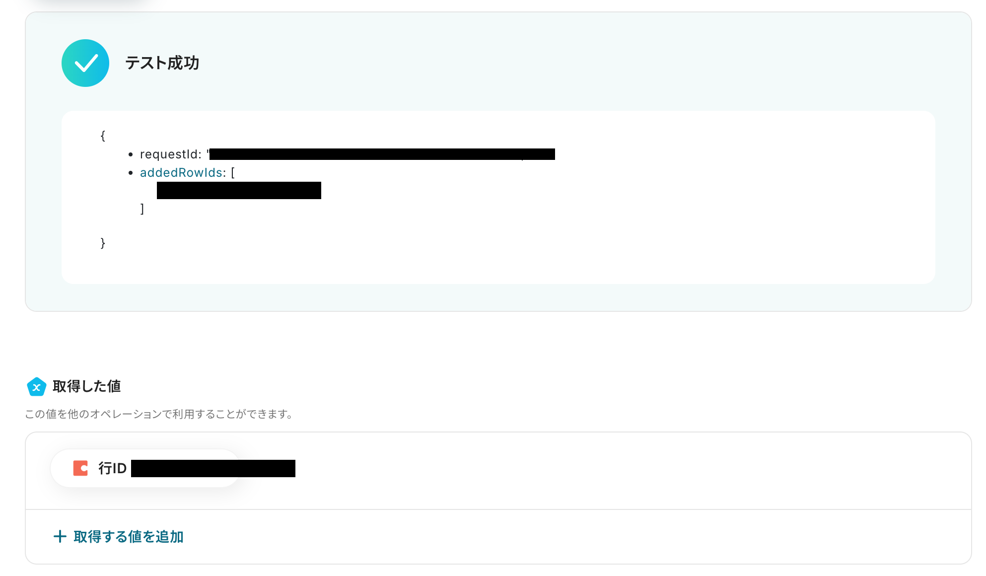 「+レコード情報を追加」からレコード情報を増やすことができるので、必要に応じて「列ID」と「値」を設定していきましょう。