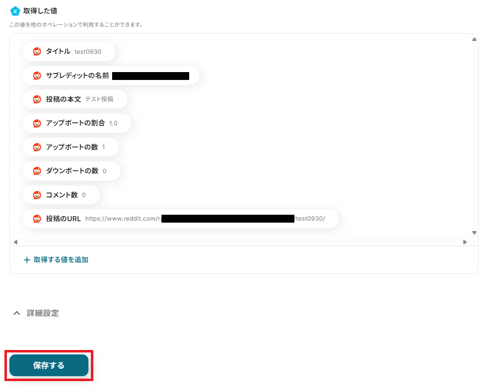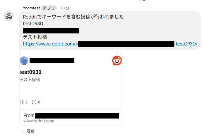 次の工程へ進む前に、テスト用にRedditで任意のキーワードを含む投稿を行っておきましょう。