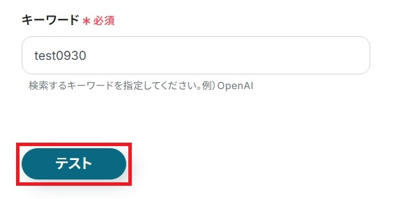 入力したら「テスト」をクリックしましょう。