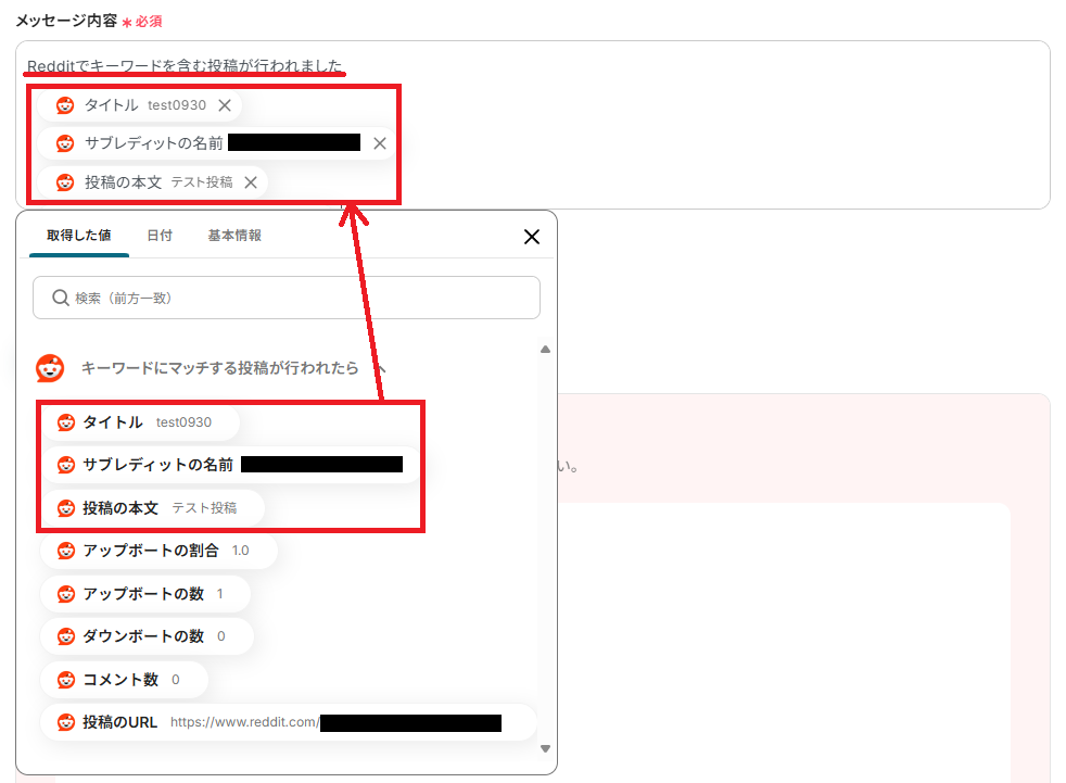 取得した値を利用することで、フローボットが起動するたびにRedditの投稿を取得してメッセージへ反映できます。