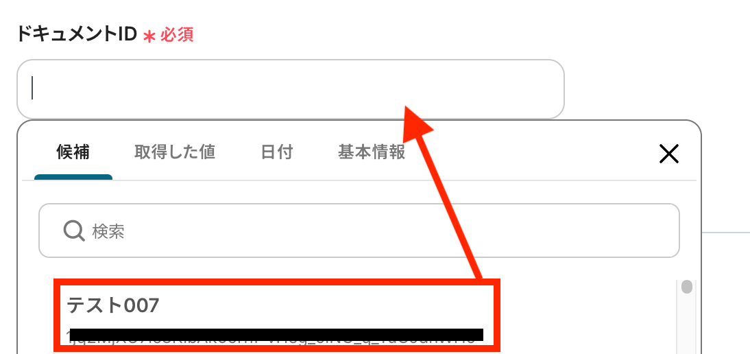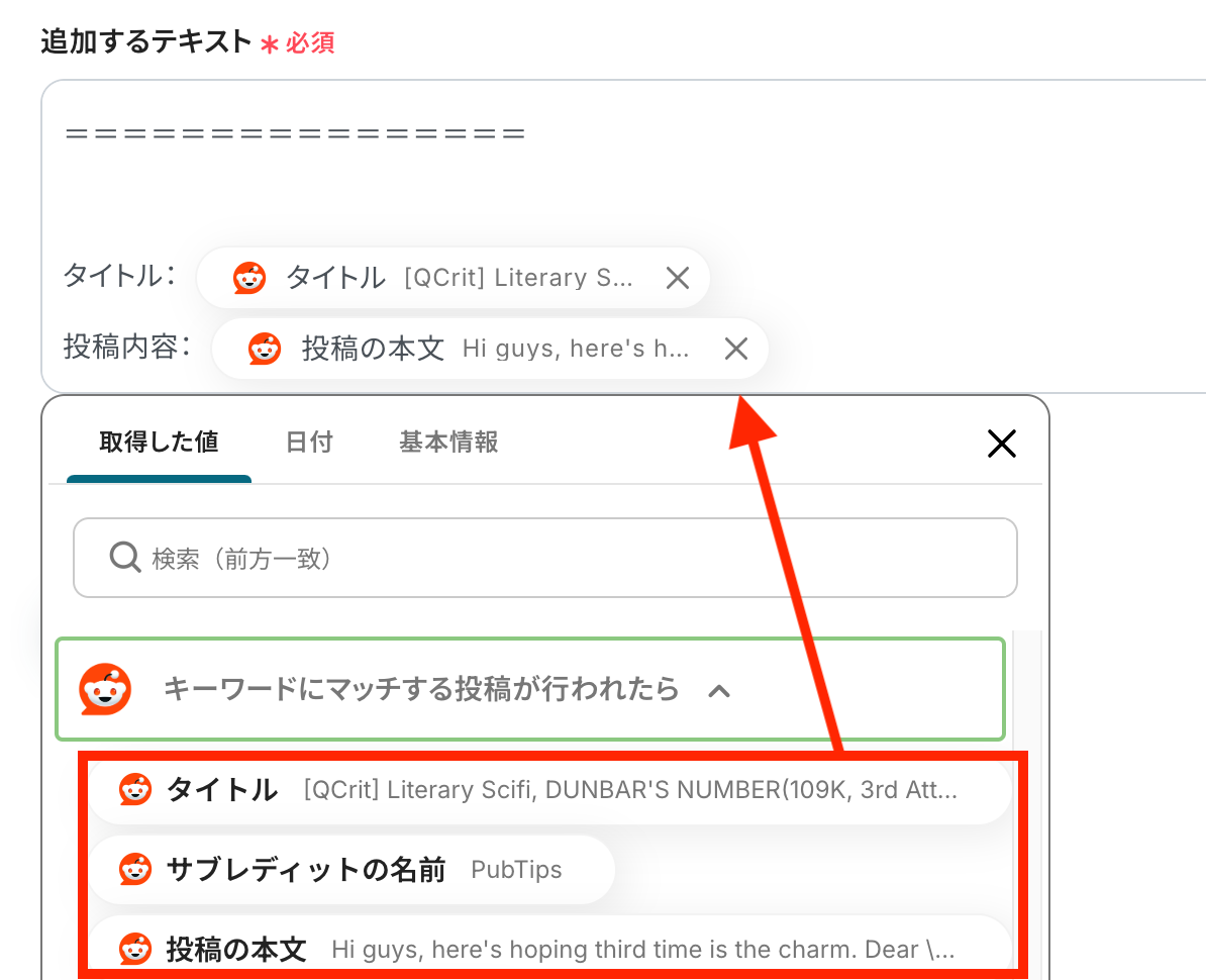 ドキュメントID:候補からRedditの情報を記録したいドキュメントを選択します。