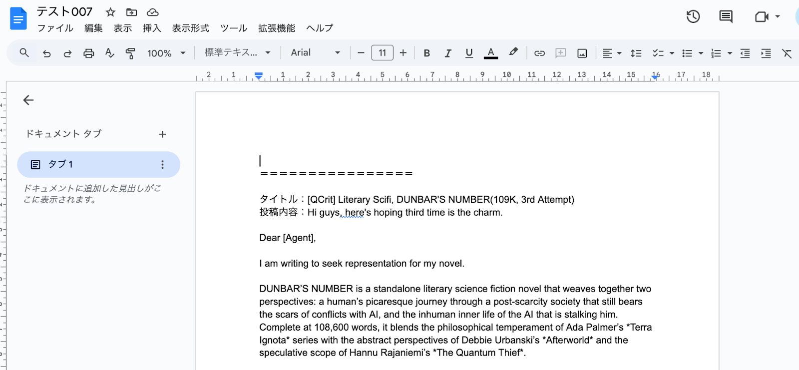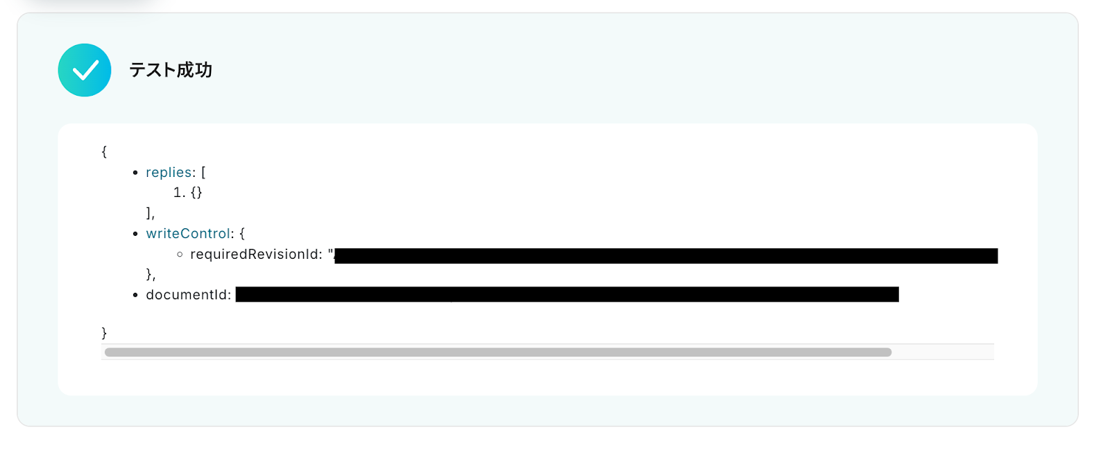 テストに成功すると、Googleドキュメントにテキストが追加され、以下のような画面が表示されます。
