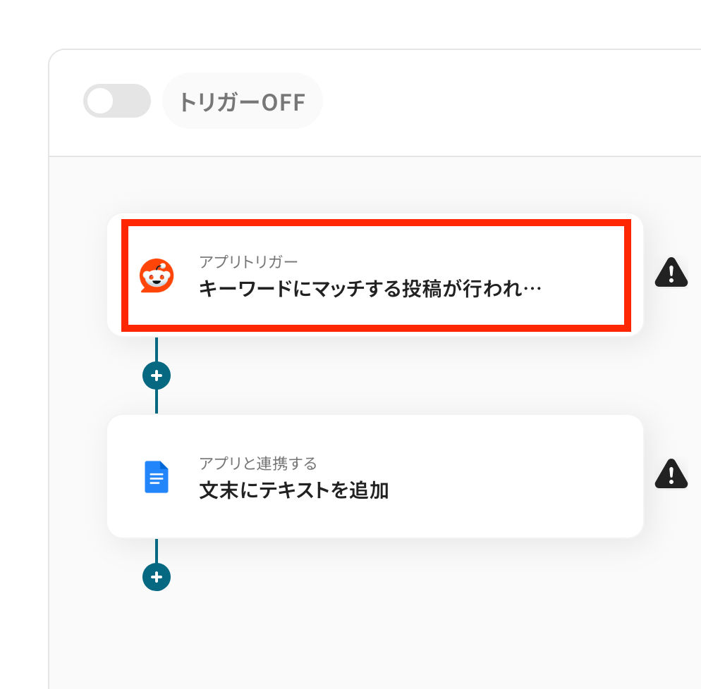 今回は「Redditでキーワードにマッチする投稿が行われたら、Googleドキュメントにテキストを追加する」フローを作成していきます!