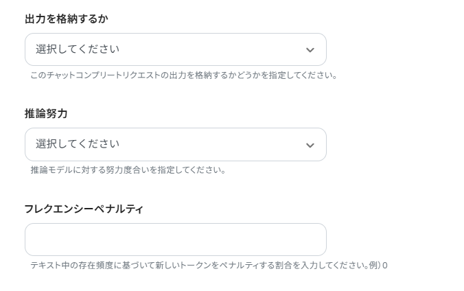 モデルIDは任意のモデルを候補から選択しましょう。 今回は「gpt-4o」を選択しました。
