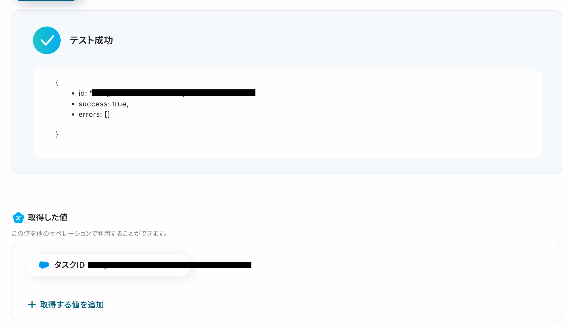 ここで連携テストを行います。テストボタンをクリックし、実際にキーワードで絞り込んだ投稿が取得した値に反映されているか確認します。