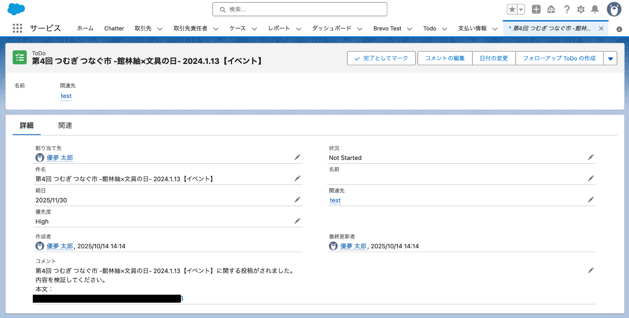 - Redditのトリガーで取得した投稿のタイトルやURL、投稿者名などの情報を、SalesforceのTo Doの本文や説明欄に変数として埋め込み、自動で反映させることができます。