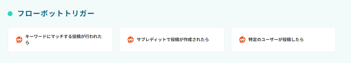 - Redditのトリガーでは、監視対象としたいキーワードを自社サービス名や競合名など、目的に応じて任意に設定してください