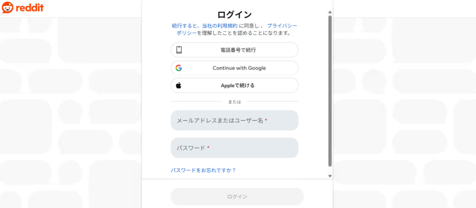 Redditに登録しているメールアドレスとパスワードを入力し「ログイン」ボタンをクリックしてください。