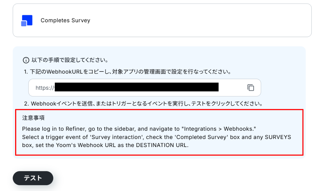 (3)赤枠を確認の上、Refinerの管理画面からWebhookURLを設定してください。