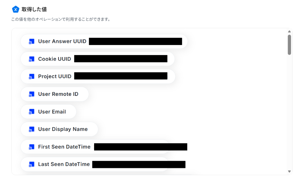 その際にはRefinerのアンケート内容を必要な項目に変更し、「取得した値」に追加することで自動化することができます。