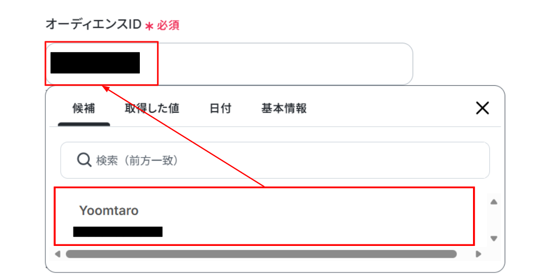 (3)「オーディエンスID」を候補から選択します。