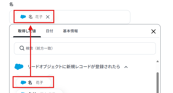 - 最後に、オペレーションでSalesforceの「レコードを追加する」アクションを設定し、取得した顧客情報を指定のオブジェクトに追加します。
