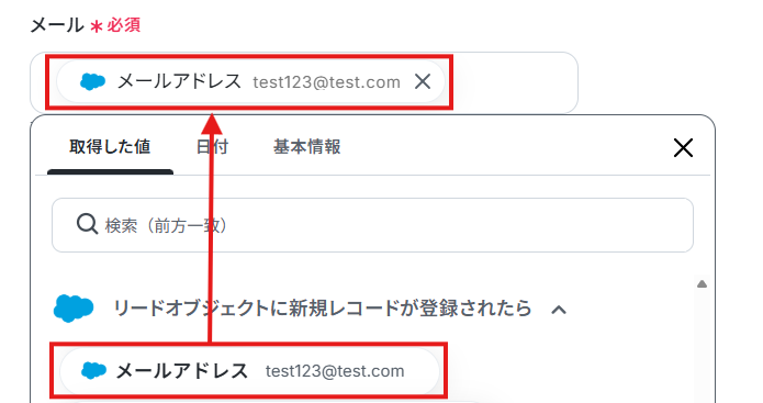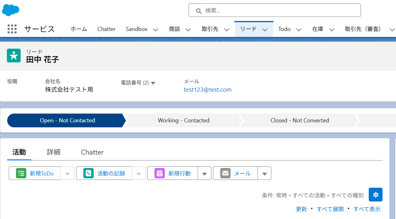 ステップ3:Salesforceにリードオブジェクトに新規レコードが登録されたら